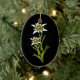 Beautiful oval ornament, with graphics of the Alpine flower Edelweiss, against a jet black background. Great on your Christmas tree or as other decorative uses around the house, like a fan pull or hanging on the wall. Makes a great gift for anyone who loves fine art.