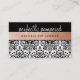 PRETTY ELEGANT DAMASK pattern black faux rose gold Business Card