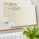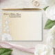This Pretty Posy collection is simple & elegant. This fully customizable collection features a white faux embossed flower with delicate swirling vines. These striking, A7 envelopes will set the tone beautifully for your romantic wedding or any special event. Use the orange "Customize It" button above to insert your own text. This set contains: 5.25" square invitation with matching envelopes, coordinated A7 envelopes, 5.5x7.5" menu, 4x9" tea length wedding program, address labels, RSVP card, postage stamps and a flexible save the date photo magnet.
