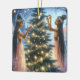 Personalized Christmas Ornament. Illustration of African-American fairies or angels decorating a Christmas tree in a winter wonderland. Beautiful ethereal fairytale background.