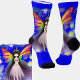 Pretty Fantasy Fairy with Pink Wings on Blue Socks - - see more great sock designs in my store.