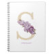 Elegant feminine and pretty letter S floral monogram notebook features purple flowers and greenery accents with faux gold glitter typography. Personalize by adding a name or a short phrase. This floral letter monogram notebook will be perfect as a gift.