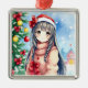 Pretty Festive Anime Girl Christmas Metal Ornament