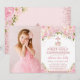 Pretty First Holy Communion Rose Gold Pink Floral Invitation