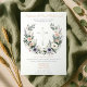 This invitation card exudes the serenity and grace of the Easter season, with a tasteful and delicate floral wreath encircling a central white cross. The wreath features soft hues of lavender, blush, and cream flowers, interspersed with lush green leaves and sprigs, all set against a clean, white background. The design is symmetrical and balanced, with the cross at the heart of the composition, symbolizing the spiritual significance of the occasion. The overall aesthetic is one of peaceful celebration and refined elegance, inviting attendees into a contemplative and joyous observance of Easter.