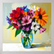 A floral poster. A pretty poster with an illustration of a colorful vibrant glass vase of flowers done in an ai impasto style oil painting.