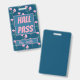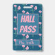 A simple ocean blue student hall pass with a pretty floral pattern . Personalize it with the teacher's name using the template . You can choose between metal clip or yarn . Ideal for middle school or high school .