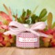 A pretty floral pattern on a soft pink background. These adorable honey pots make the ideal small party favor for your guests. The label is ready for you to customize with your own personal text.