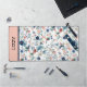 This product is adorned with a captivating floral pattern in soothing shades of blue, teal, light green, and white. Elevate your workspace with our personalized name desk mat featuring a charming floral pattern.