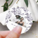 Elegant floral purple and white wedding sticker features a chic photo arch with personalized name and wedding date.