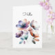 A watercolor illustration of pretty flowers in teal, peach, purple, blue. This botanical print is perfect for a simple Hello greeting, but you can change the text to your preferred greeting. AI assisted graphic purchased with commercial use. Artwork: DreamCafeArt