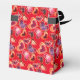 Favor Box featuring hand dawn and digitally designed, colorful, foil textured, red, orange, pink, purple stack, double heart lollipops pattern on a red background.
