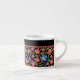 Pretty Folk Art Style Floral on Black Espresso Mug