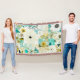 White and turquoise whimsical folk art flowers throw blanket.