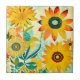 Pretty Folk Art Yellow Flowers Ceramic Tile