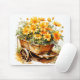 This unique mousepad features an illustration of some flowers in a wooden cart.