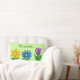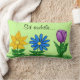 Pretty flowers in golden yellow, blue yellow daisy, and purple tulip in bloom in the garden grass adorn these decorative throw pillows with a refreshing light green background. Sit Awhile is written in black text. Click Customize to add text to back of pillow. Lovely for the spring or summer months or anytime of year to bring the outdoors inside. Original Hand-Painted Artwork by TamiraZDesigns.