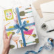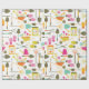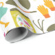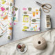 Colorful garden themed wrapping paper including wheelbarrows, shovels, gloves, watering cans, rakes and flower seed packets. Perfect for garden themed birthdays and bridal showers.