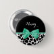 Pretty Giraffe Print Mint Green Bow With Name Pinback Button