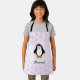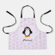 Personalize this pretty girl penguin with pink daisy background apron with a name or text of choice