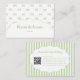 Trendy vintage-inspired green bow stripe pattern business card crafted for pretty, girly, feminine brands. Perfect for handmade baby clothing shops, makeup artists, and small business owners. Designed with stylish QR code integration for modern, eye-catching branding and professional networking.