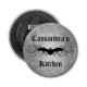 A cute round button style magnetic bottle opener to personalize in grungy gray and a pretty black bat and swirls. Lovely Gothic style.