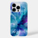 Pretty, Graceful Blue And Purple Abstract Floral Case-Mate iPhone 14 Pro Case. This lovely name personalized iPhone 14 case with a an abstract floral theme in shades of blue and purple makes the perfect accessory to add a feminine touch to your electronics collection. This charming pattern can be easily transferred to another iPhone case if desired. Your name and choice of fonts can be easily inserted by using Zazzle's design tool.