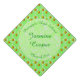 This awesome graduation cap topper features a pattern of pretty pale pink apple blossom flowers. They are 2 different shades of pink and all have a yellow middle. They are ideal for a graduation celebration and are mixed amongst apples. Each apple is green with a red blush on one side and a small brown stalk.