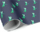 Pretty Green Firefly Pattern on Dark Blue Wrapping Paper