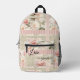 Backpack featuring a pattern design with pretty watercolor roses on pink and green with stripes and elegant polka dots.