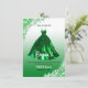 Invite your damas to your quince with stylish dama proposal. Design features gorgeous green quince dresses and green flowers.