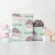 Pink and green birthday cake, flowers, roses, butterfly and polka dots Birthday gift wrap.