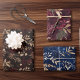 Elegant Christmas wrap with different botanical patterns in blue, purple and gold.
