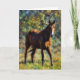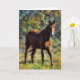 My original artwork is featured on this pretty horse art card. It is of my original photograph of a bay horse in a farm field with large trees behind it, processed with an oil pastel painterly style for an artsy appearance. The peaceful scene makes it a unique art card to send to anyone. This card is blank inside so you can write your personal letters and notes.
