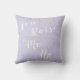 pretty hot air balloon soft liliac pink cushion pillow in lilac and white with hessian look texture. Cutomizable text on the reverse for a personalized custom gift.