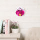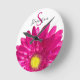 Pretty Hot Pink Daisy Custom Name and Monogram Round Clock