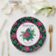 Pretty Hot Pink Floral on Black Paper Plates