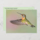 Postcard featuring a female mountain gem hummingbird, with her iridescent green head feathers and rufous orange plumage on display, flying through a Costa Rica cloud forest. A beautiful card for hummingbird, garden and nature lovers. Photo taken at Bosque de Paz Reserva Biologica, Valle del Rio Toro, Alajuela, Costa Rica.