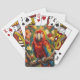 A bird themed playing cards with an impasto painting style colorful red, blue and yellow Macaw and flowers.