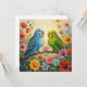 A pretty blank notecard for a friend or family member who loves parakeets! On the front is an impasto painting style blue and green parakeets and flowers.