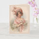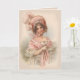 Pretty young lady is all in pink. From her stylish plumed hat to her gown and matching shawl. A romantic Victorian design.