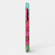 A stylized, vibrant floral painting of cosmos in many shades of pink in a glass vase on a turquoise background on an iPhone case by popular Lisa Lorenz