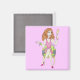 A pretty girl dressed in pink, looking at herself in a mirror. A sweet gift for anyone who loves girlie things, pink, fashion and delightful things. Matching card, stamp, sticker, t-shirt, poster.
