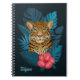 Pretty Jungle Leopard Floral Art | Blue | Name Notebook