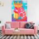 My colorful abstract painting of a pretty cat is printed on wrapped canvas