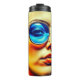 Pretty Lady with Blue Sunglasses with Reflection Thermal Tumbler