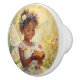 A pretty little African American fairy with flowers in her hair and a floral background. This is an impasto style illustration. Pretty fairy tale style knobs for cabinets or craft projects.