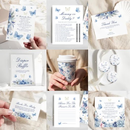 Blue Butterflies Boy Baby Shower Designed by Nadezhda Rakhotskaia
