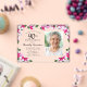 This invitation is designed with a transparent acrylic background. An elegant frame of watercolor pansies surrounds your 90th birthday party details and photo. The bright and colorful magenta, pink and white floral is perfect for a spring or summer birthday celebration. All of the text is editable so you can create just the right vibe. The back of the invitation is a vibrant magenta. This invitation is part of the Pink Pansy collection. You the templates to create a unique invite package and coordinating party supplies.