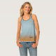 This woman's racer back tank tee shirt is light blue in the center fading to burnt orange at the top and bottom with pretty monarch butterflies.